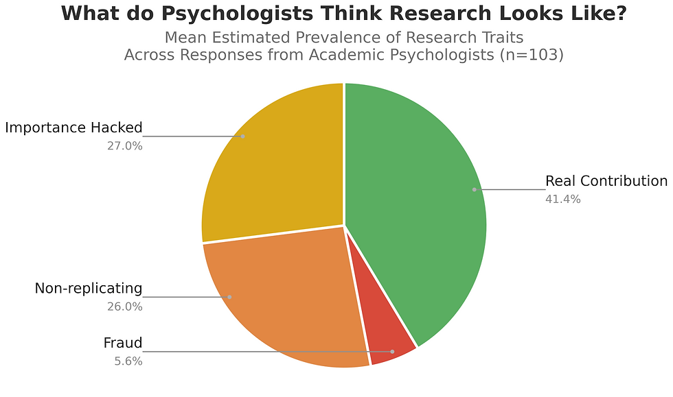 In other words, academic psychologists believe Importance Hacked papers make up more than a quarter of the papers published recently in top journals. Moreover, they rated Importance Hacking to be as common as non-replicability.